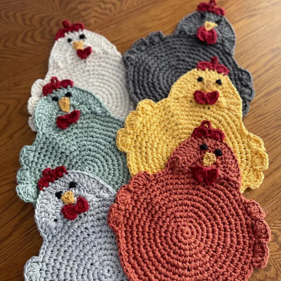 Maak je eigen schattige kip pannenlappen – haakpatroon (direct te downloaden) 🐓✨